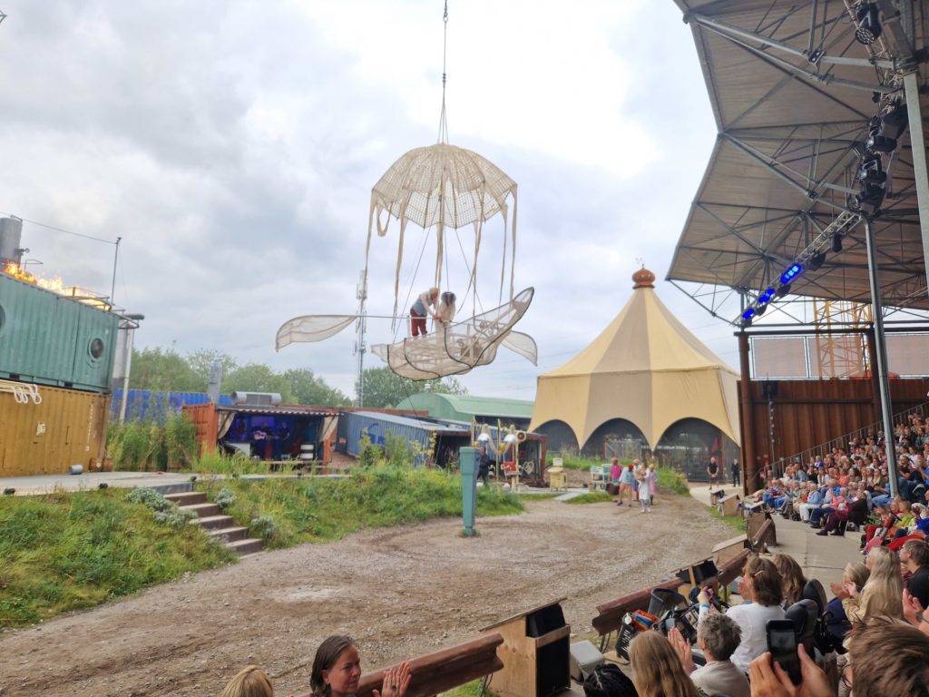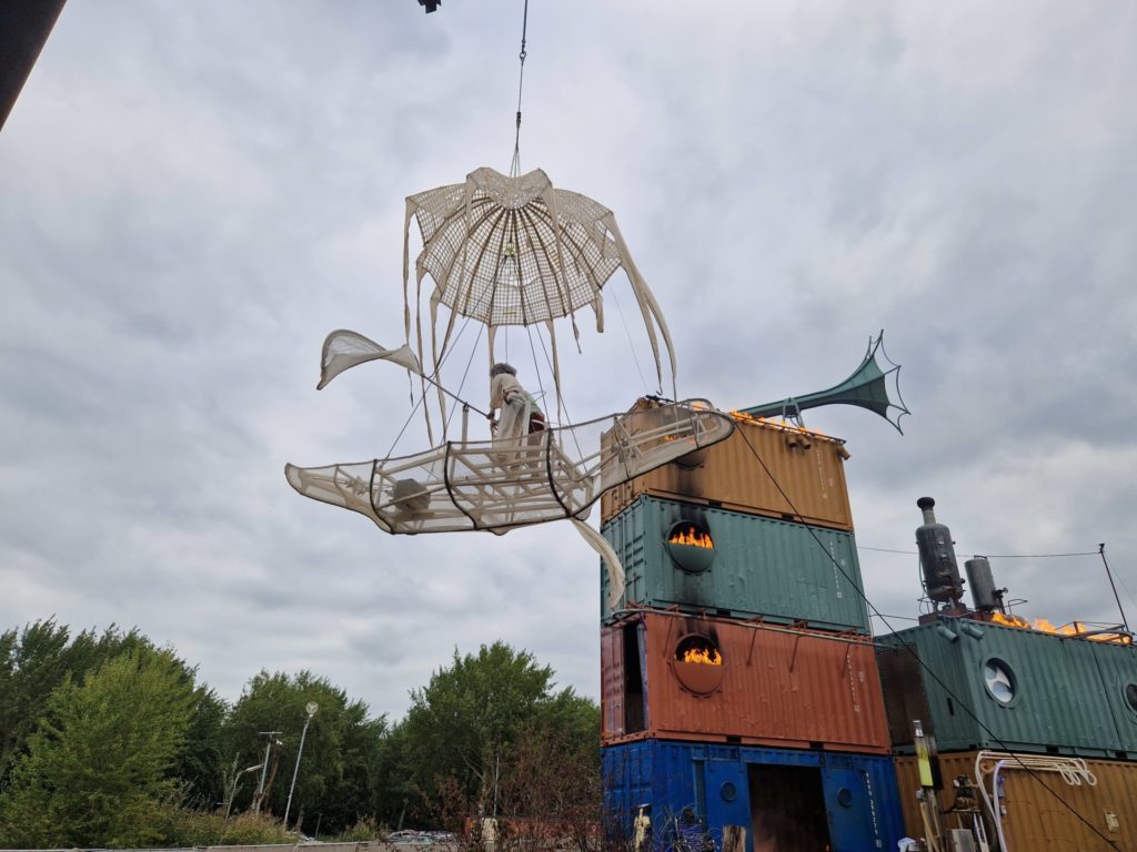 Op zondag 15 september waren we aanwezig bij een waar spektakelstuk over de afbraak van de verzorgingsstaat. Best een actueel thema dus! Theatergezelschap Vis á Vis heeft dit onderwerp in het stuk ‘Silo 8’ uitvergroot tot in het absurde met een hoop spektakel.