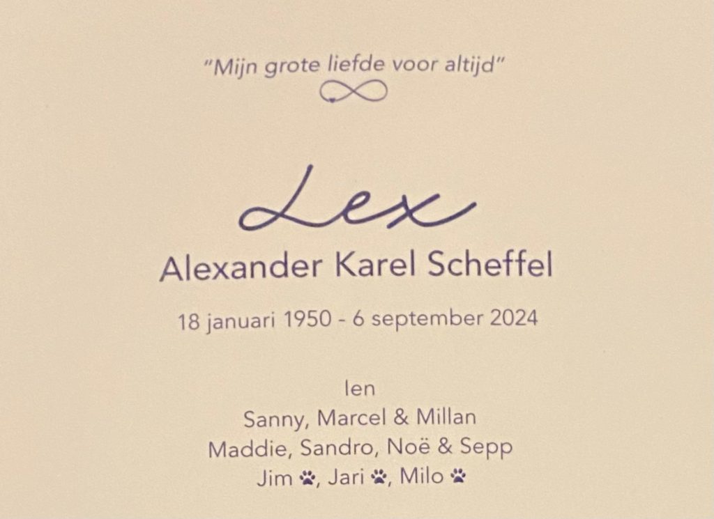 Ter ere van Lex is er de gelegenheid om een gift te doen voor het LexScheffelFonds. Dit kan via het rekeningnummer NL66 INGB 0007 5000 36 t.n.v. B.H. Scheffel-Maurer o.v.v. gift LexScheffelFonds.